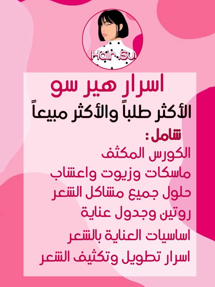اذا كنتي تحلمين بشعر طويل كثيف وصحي ولامع مالك الا هير سو عندنا ملف اسرار هير سو للعناية بالشعر من الصفر بالشكل الصحيح مناسب لجميع انواع الشعر وبه حلول لجميع مشاكل الشعر يعني مختصر عليك كل شي بالملف من الآخر وكمان فيه الكورس المكثف الي متاح لك استشارات مجانية وتحليل لوضعك العام وترشيح افضل المنتجات وكمان تصميم روتين وجدول عناية مفصل لك خصيصاً لكل مشتركة وش تنتظرين؟